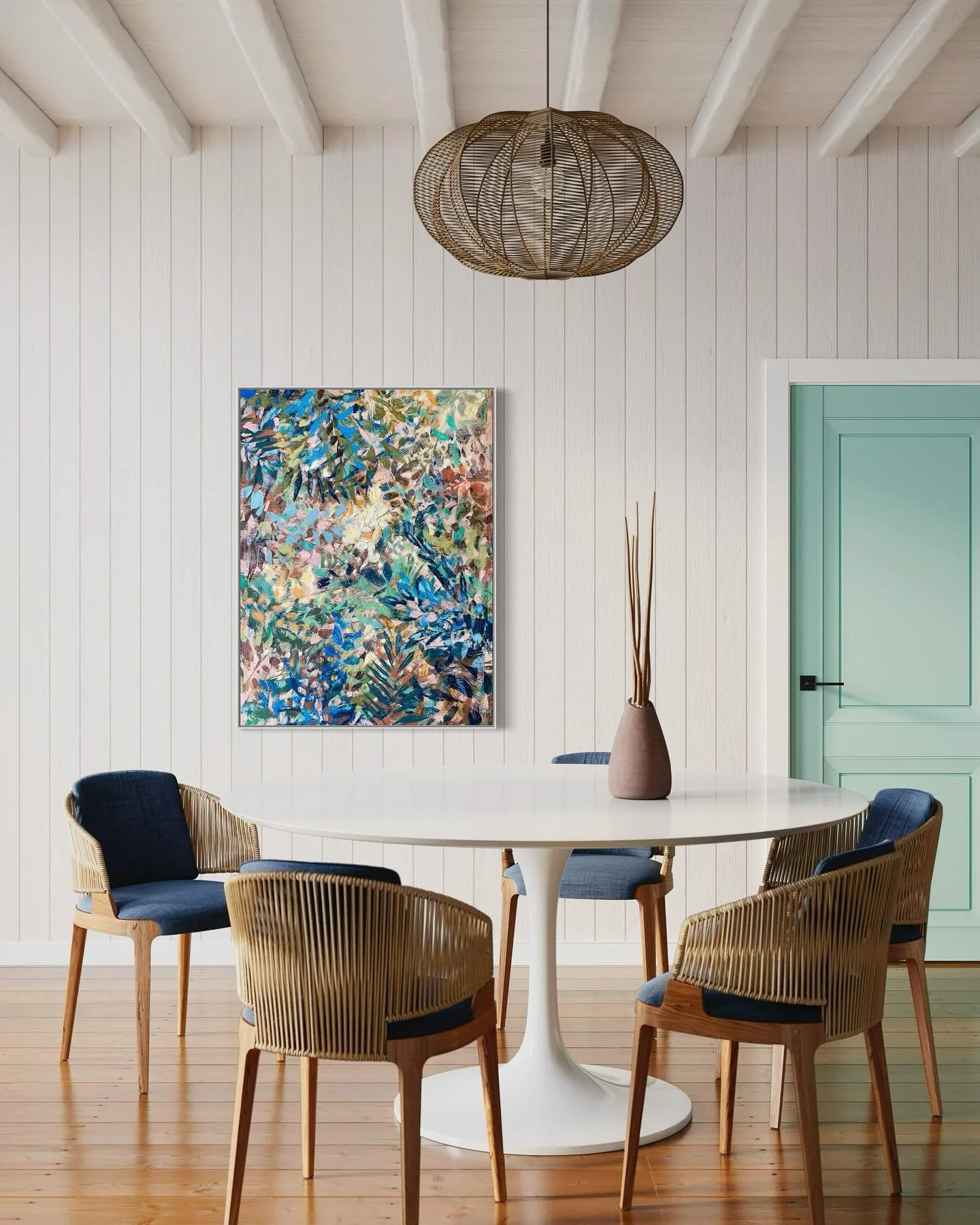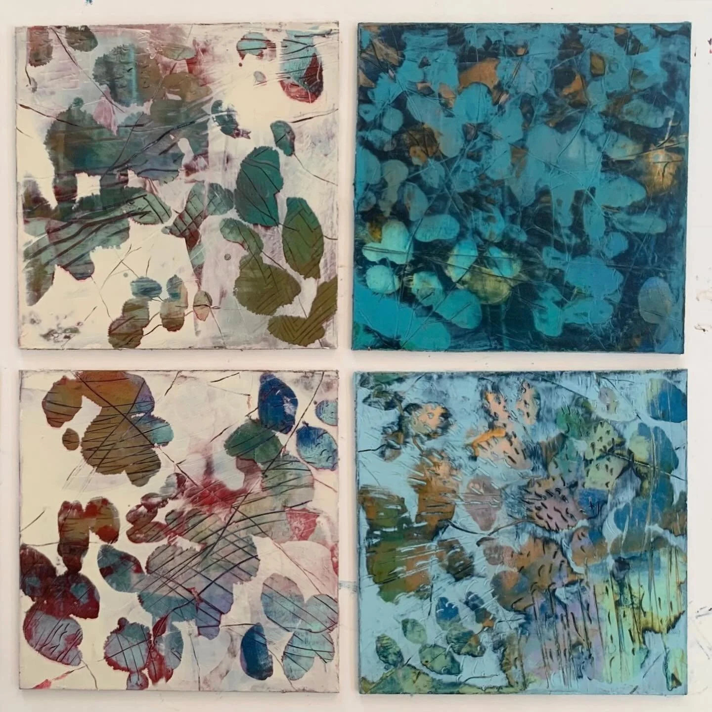 Colour plays a central role in my process. I work with a deliberately limited palette, mixing all my hues by hand. This approach gives me a natural sense of harmony across the work. I enjoy the intention & organisation before the painting begins & can sometimes spend hours just mixing my palette ready for painting